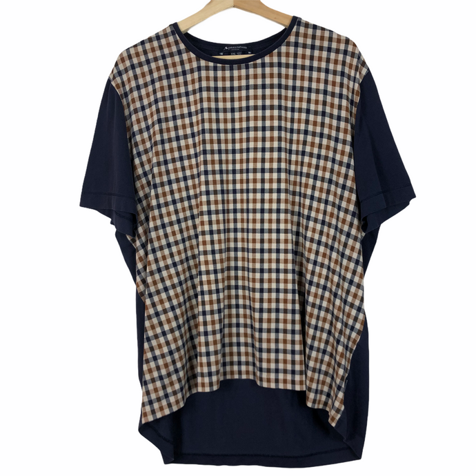 Aquascutum Navy / Check Short Sleeved T-Shirt - Double Extra Large (XXL) PTP 25.5"