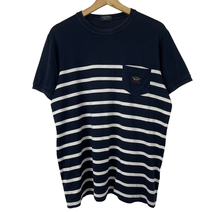 Paul and Shark Navy Striped Short Sleeved Logo T-Shirt - Large (L) PTP 21.75"