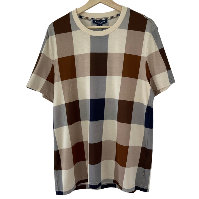 Aquascutum Block Check Short Sleeved T-Shirt - Large (L) PTP 21.5"