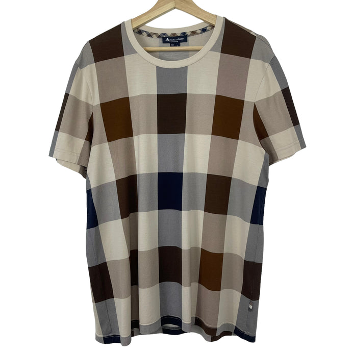 Aquascutum Block Check Short Sleeved T-Shirt - Large (L) PTP 21.25"
